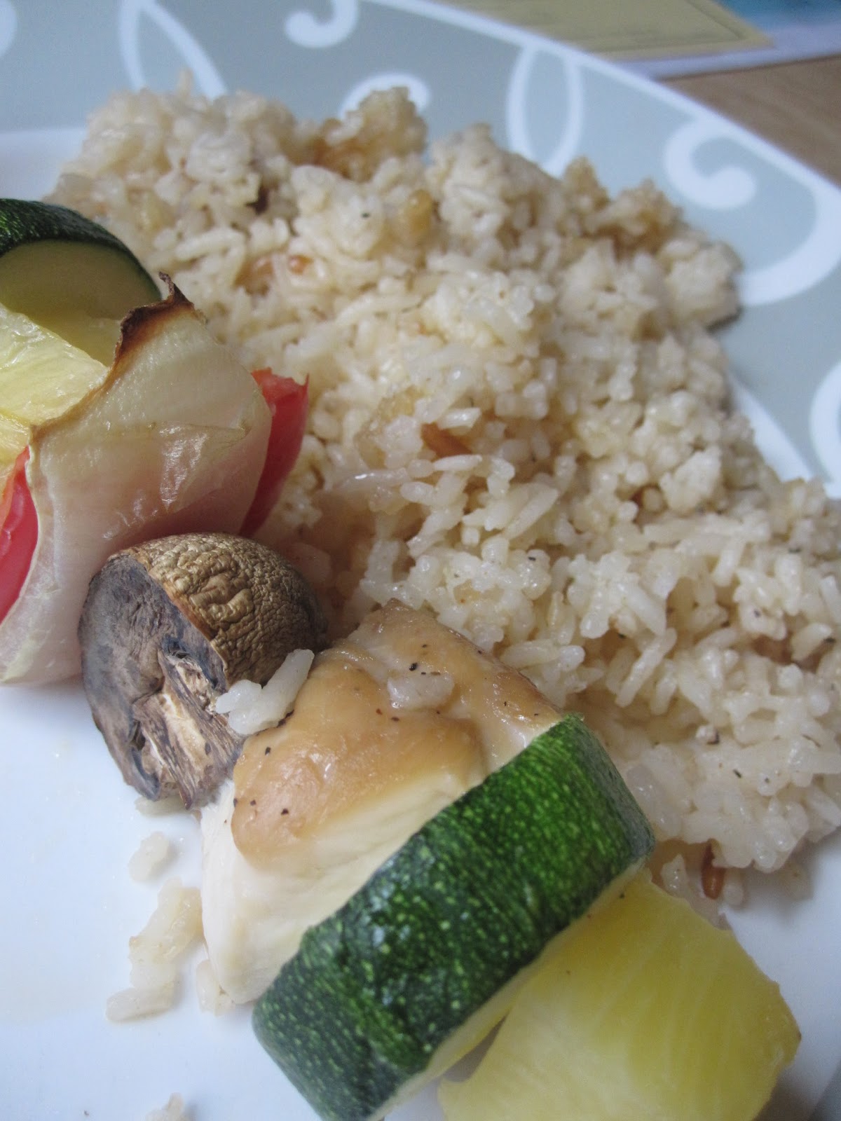 Pineapple Shish Kebabs and buttered rice