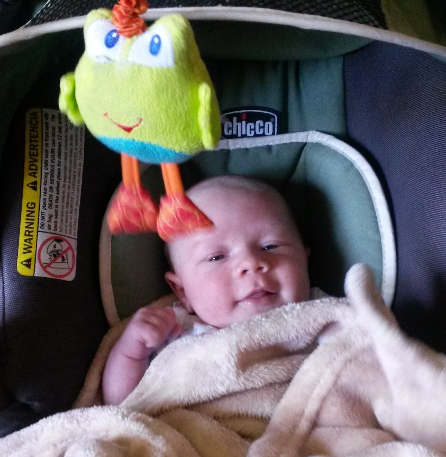 Charlie is laying on his play mat, wiggling around, alternating between trying to snack on his toes and talking to his toy duck.  He still mostly stays where I put him, but we all know that won’t last much longer.